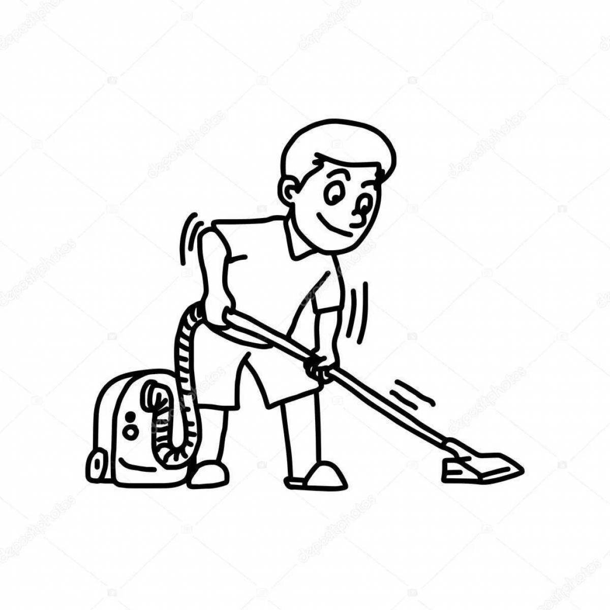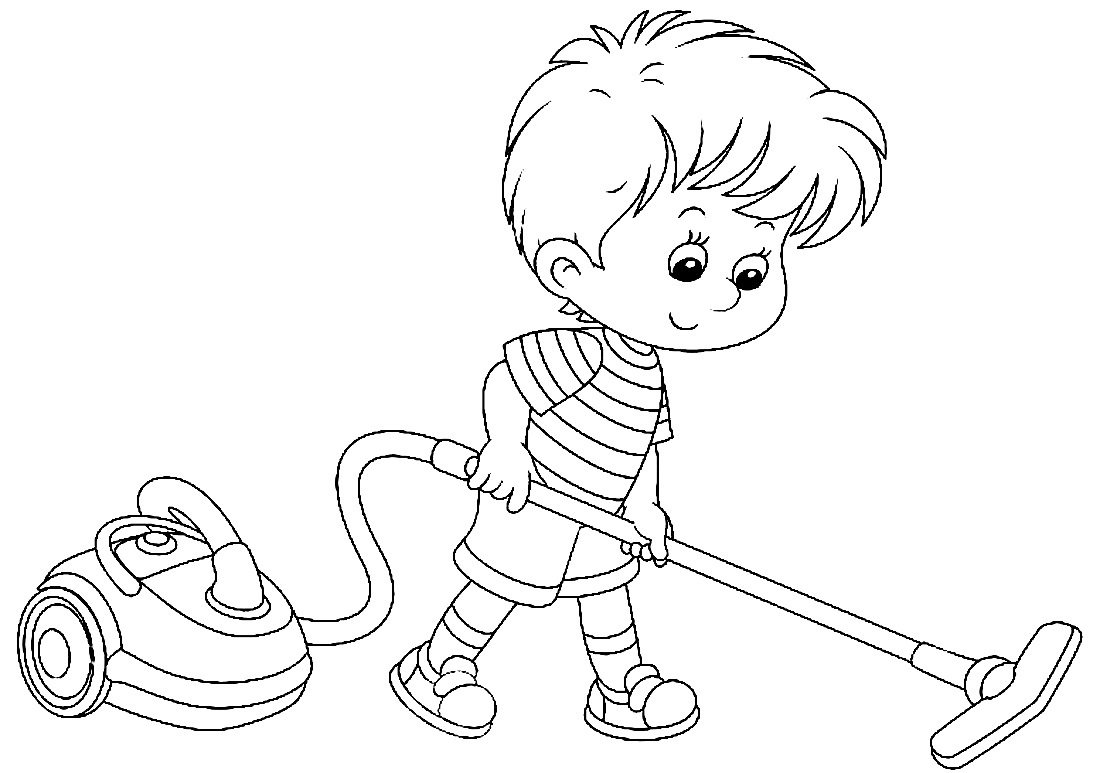 ![Мальчик пылесосит раскраска]()