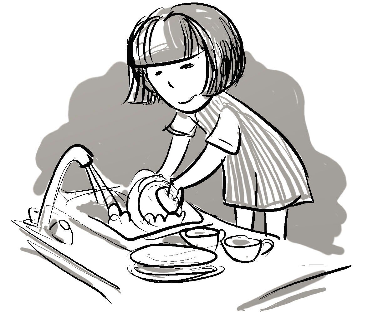 Раскраска мытье посуды для детей
