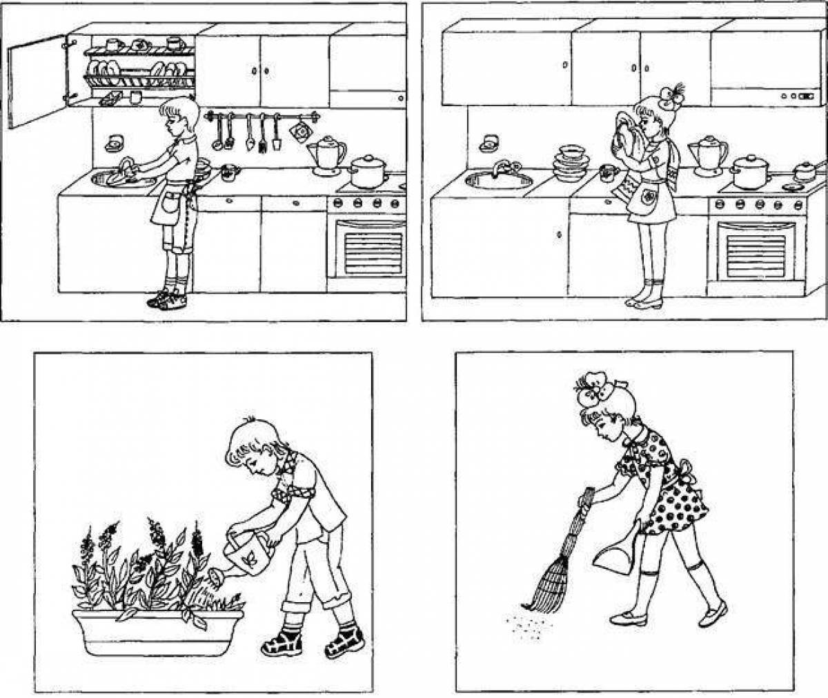 Домашние дела раскраска для детей