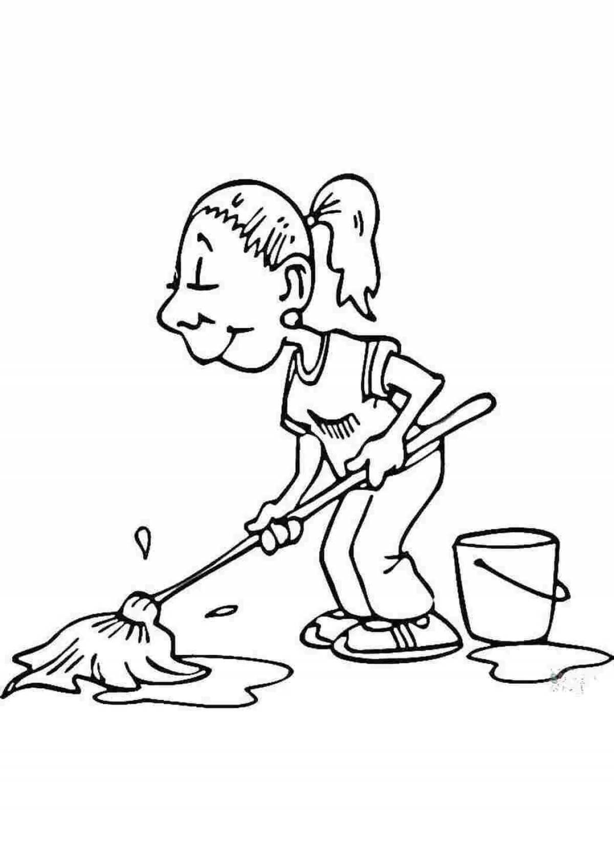 Раскраска уборка в доме для детей