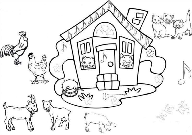 Раскраски по сказке Кошкин дом для детей