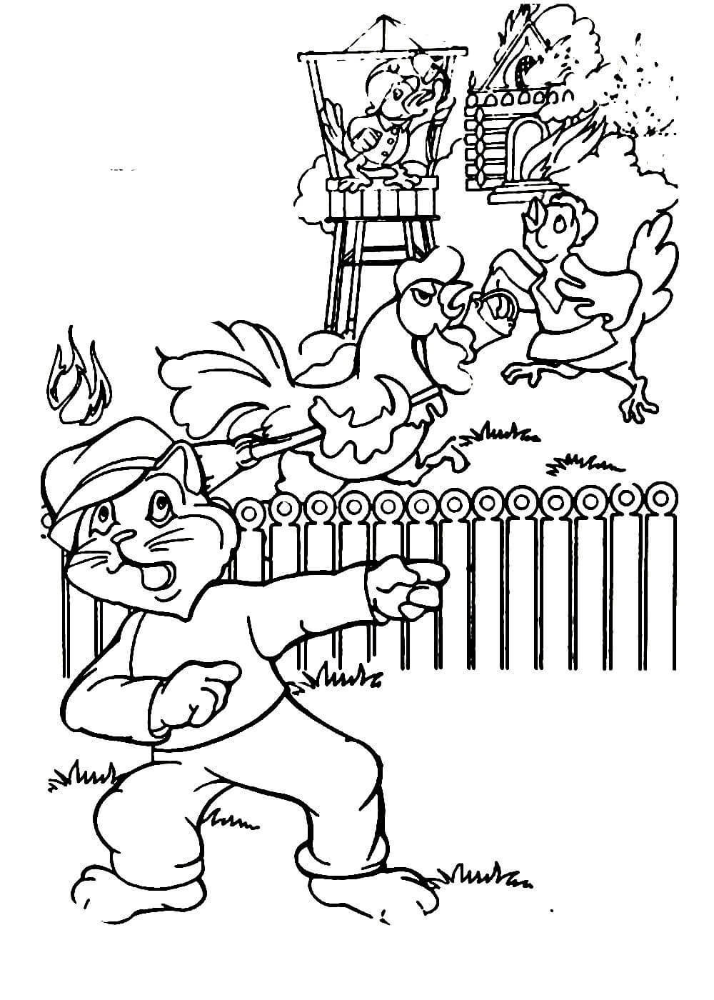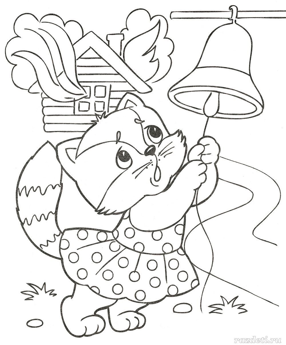 ![Раскраска Кошкин дом пожар]()