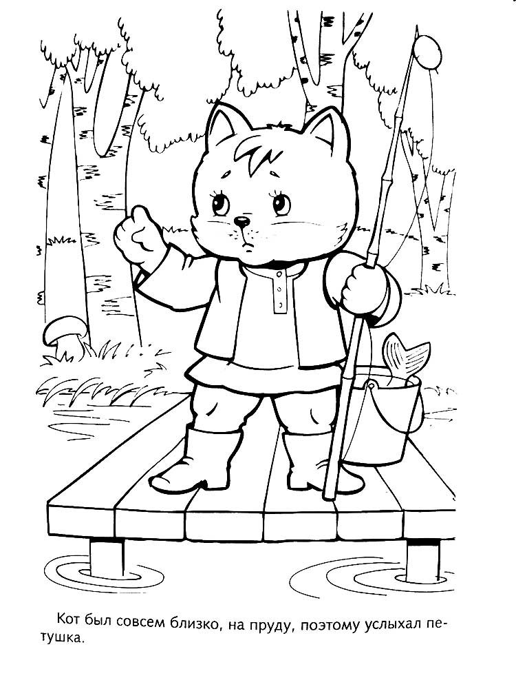 Сказка кот петух и лиса раскраска