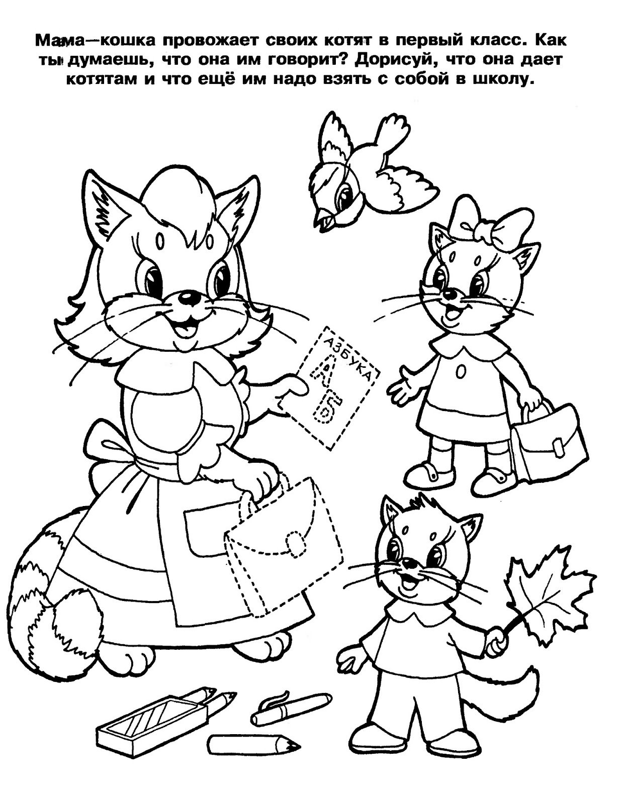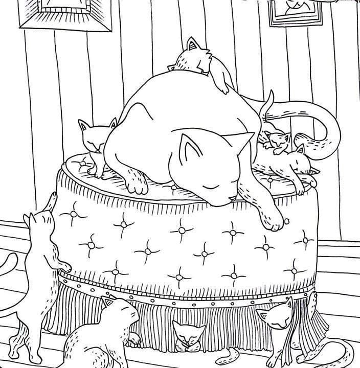 ![Раскраска домик с котятами]()