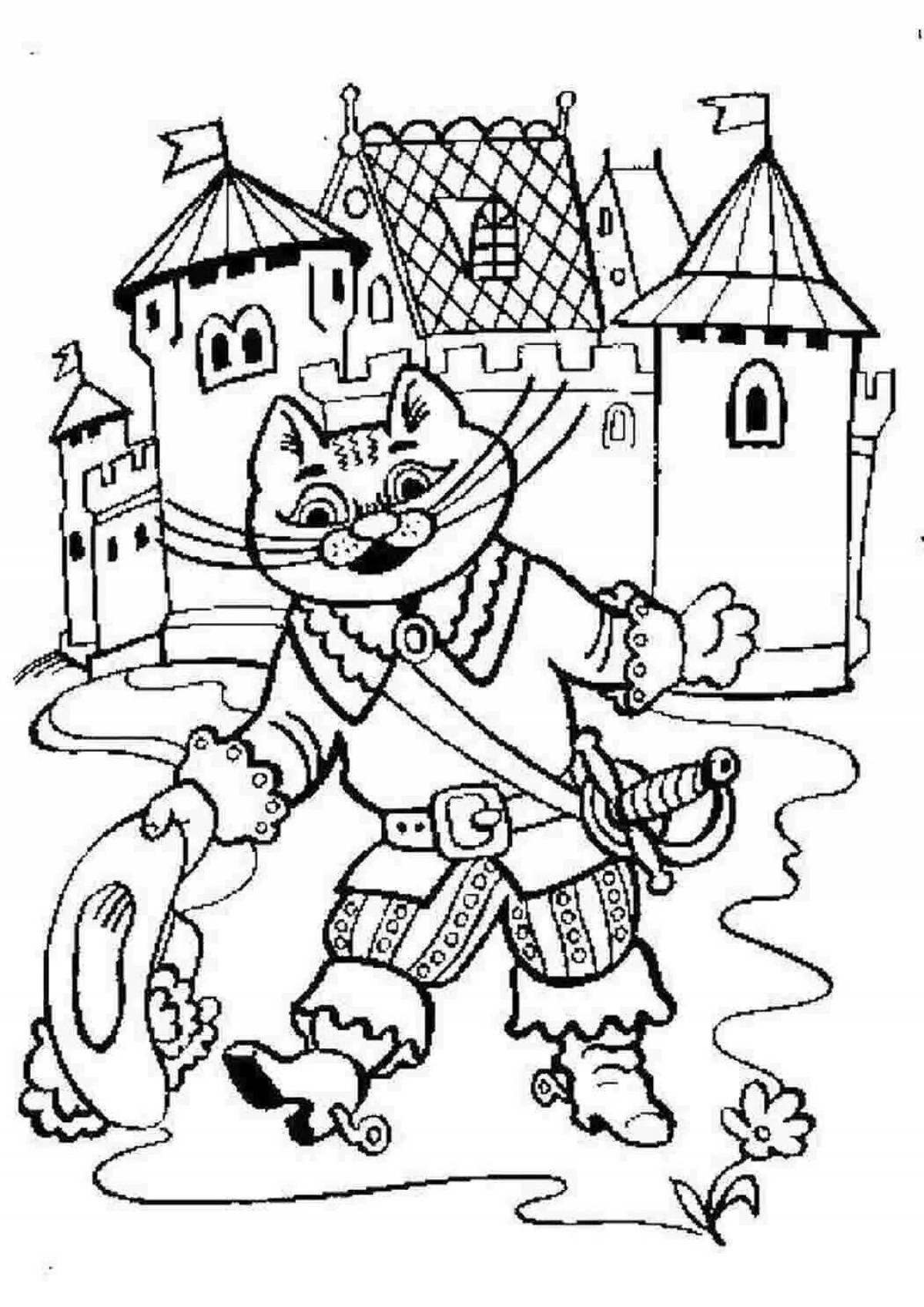 ![Раскраска кота в сапогах из сказки Шарля Перро]()