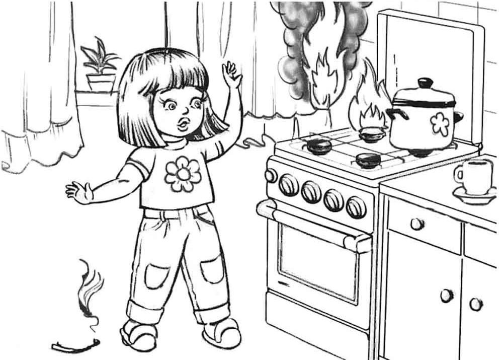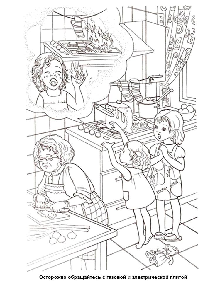 Раскраска безопасность на кухне