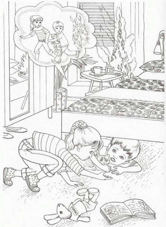 Разукрашка для детей по правилам пожарной безопасности