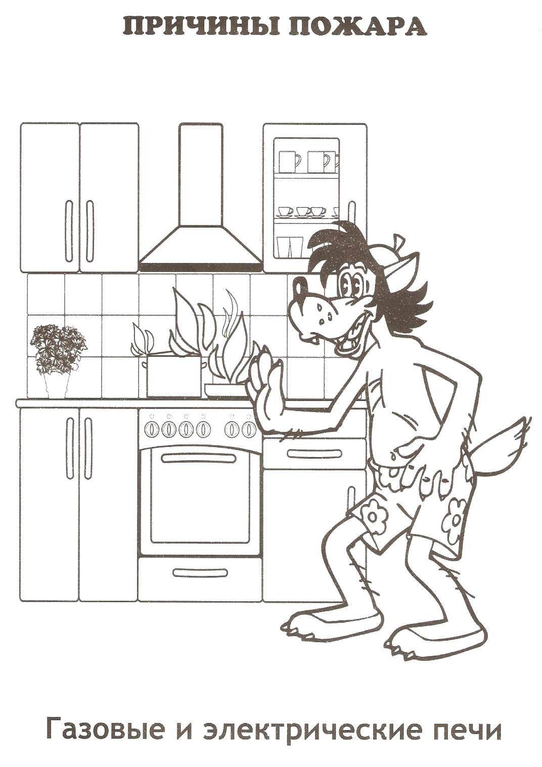 ![Раскраска безопасность на кухне]()