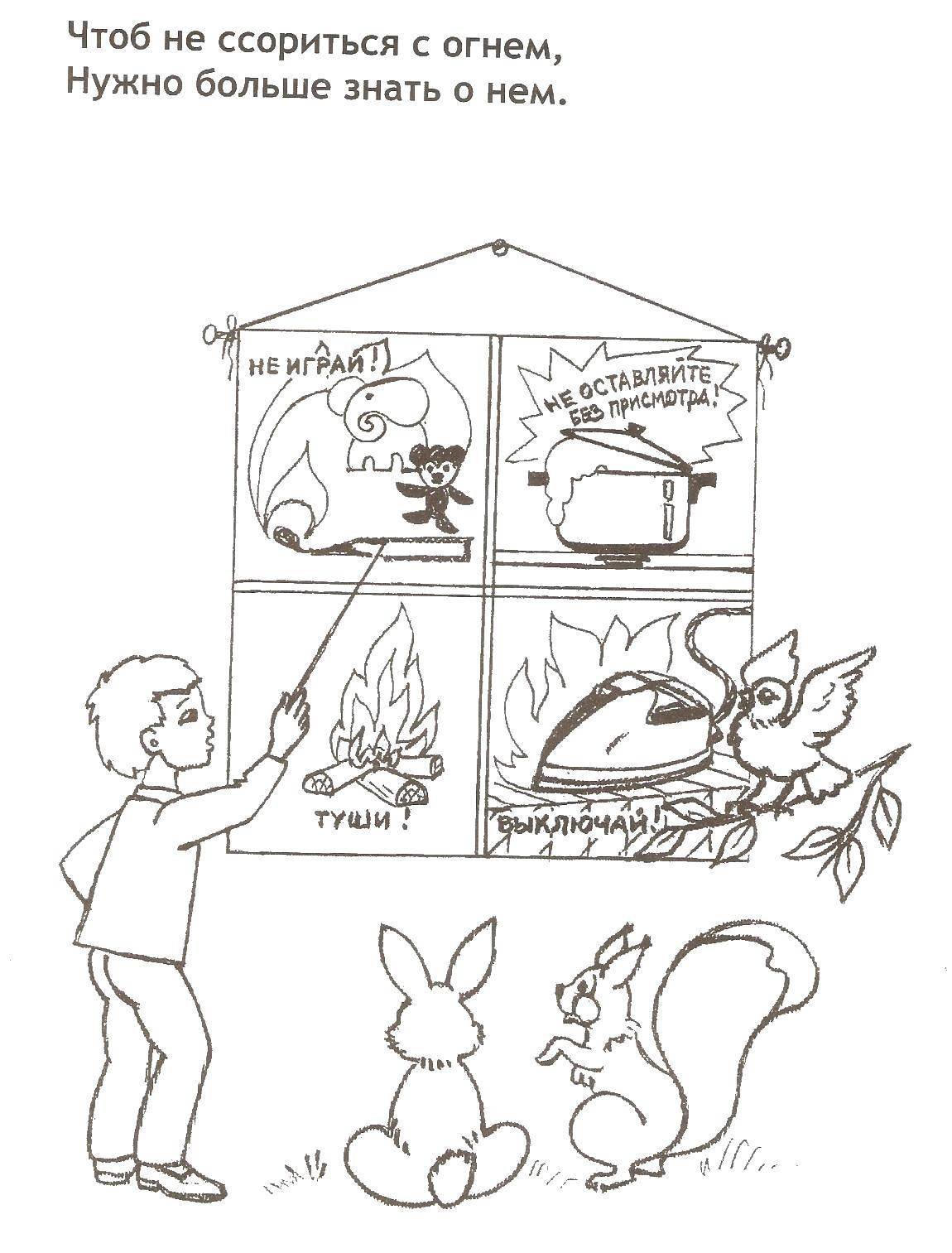 ![Разукрашка для детей по правилам пожарной безопасности]()