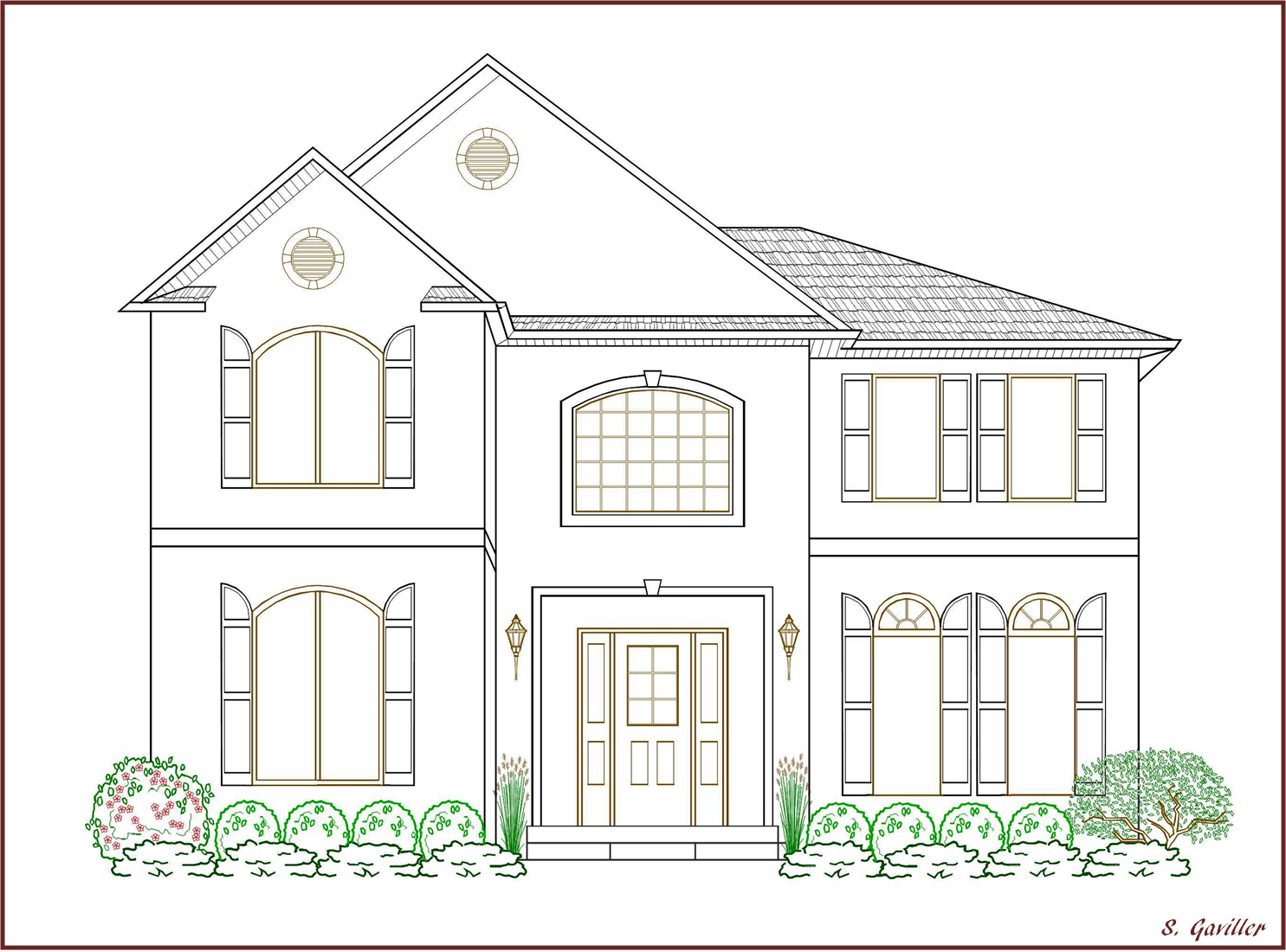 Двухэтажный дом с террасой рисунок карандашом