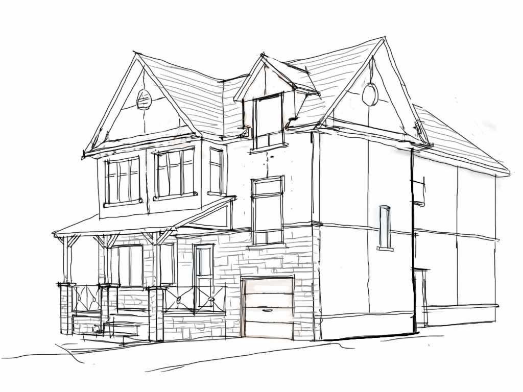![Двухэтажный дом карандашом]()