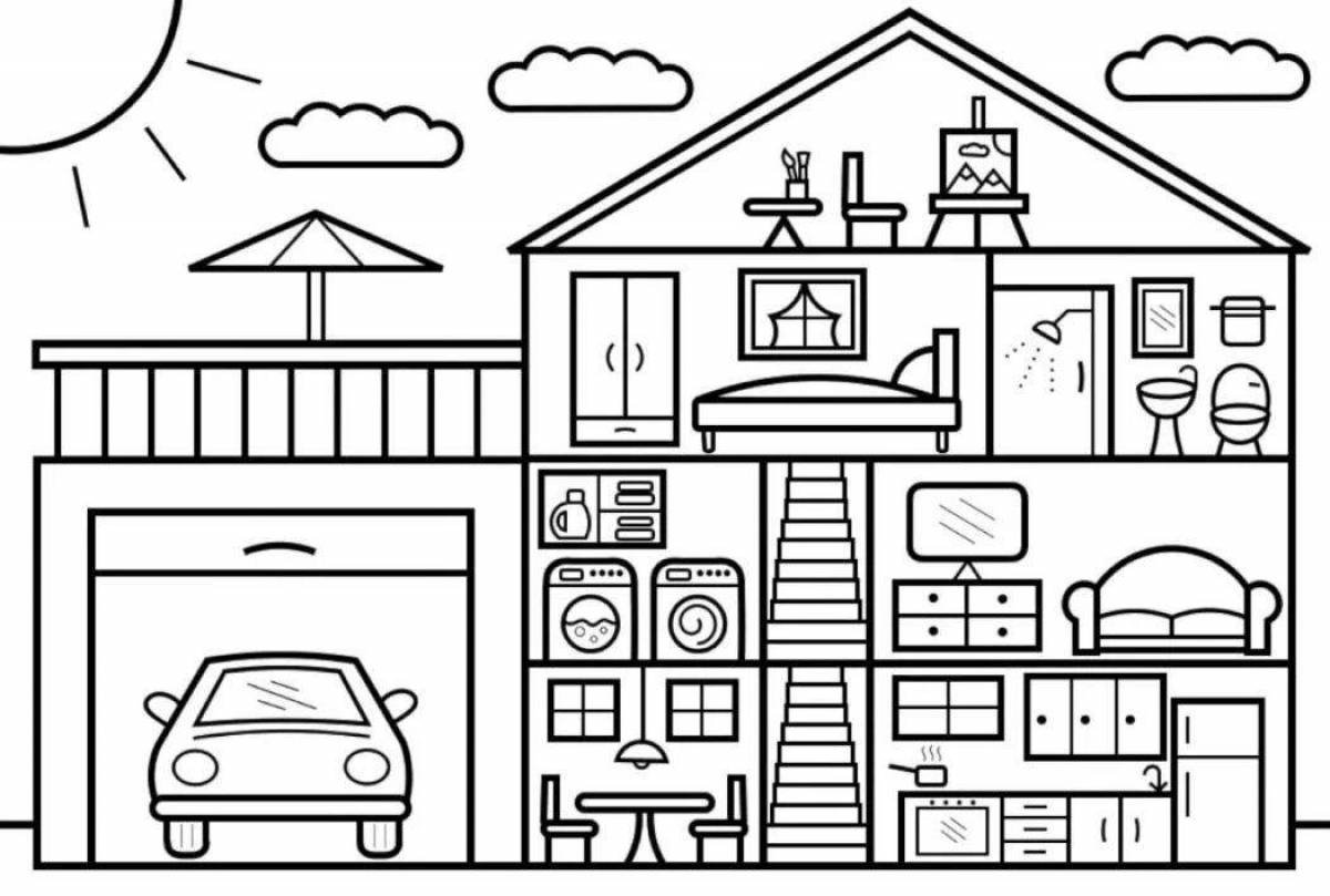 Раскраска дом внутри внутри большой