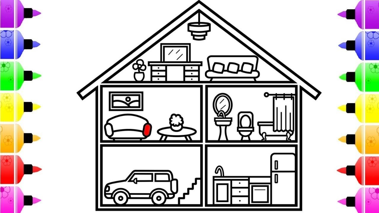![Раскраска дом внутри внутри большой]()