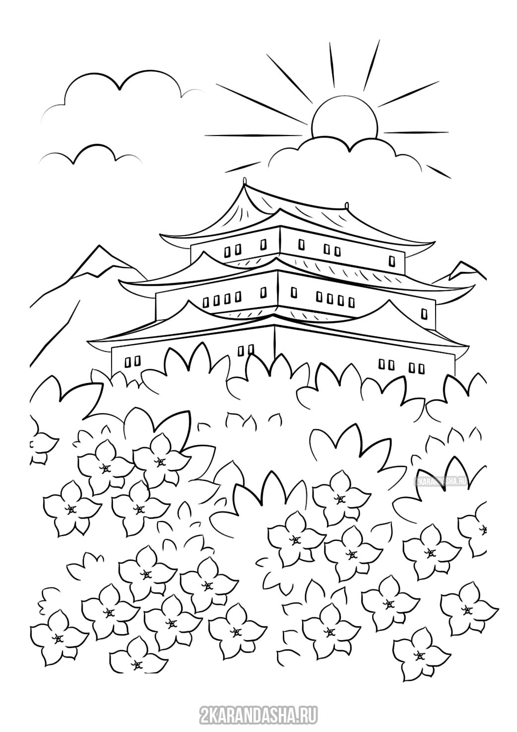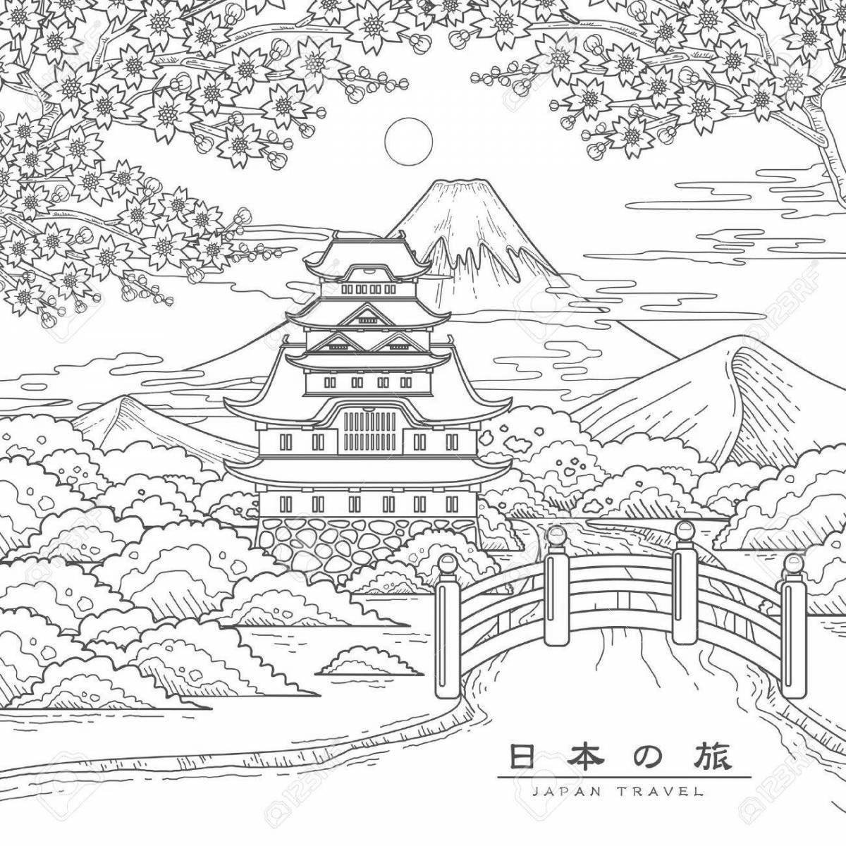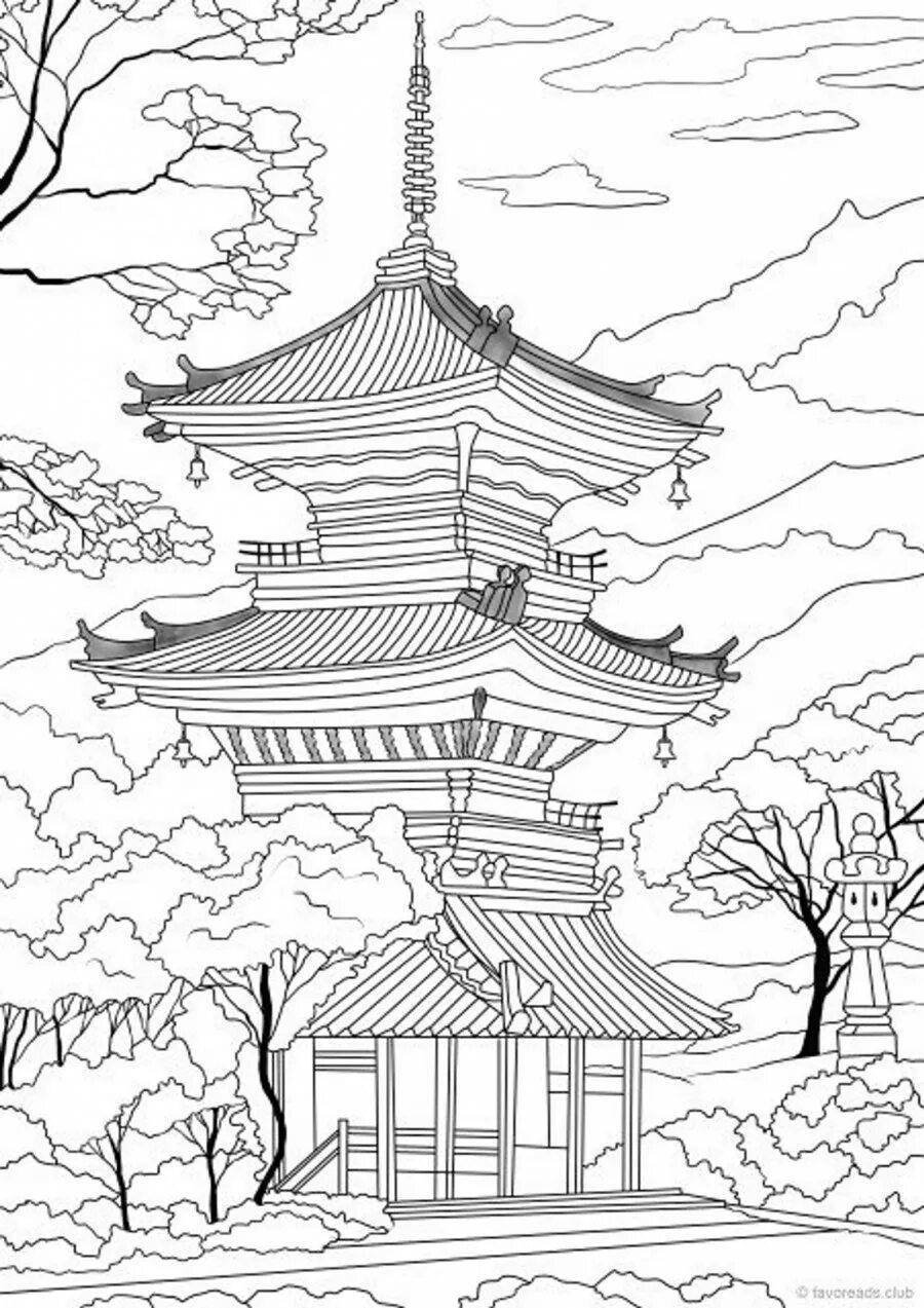 Японский пейзаж раскраска