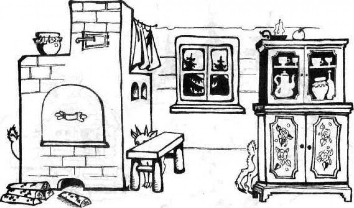 ![Русская печка раскраска]()