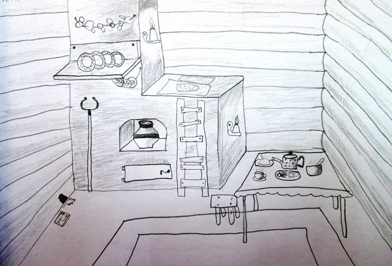 Рисунок убранство русской избы 5 класс внутри