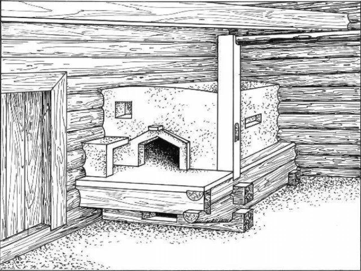 Изба внутри раскраска