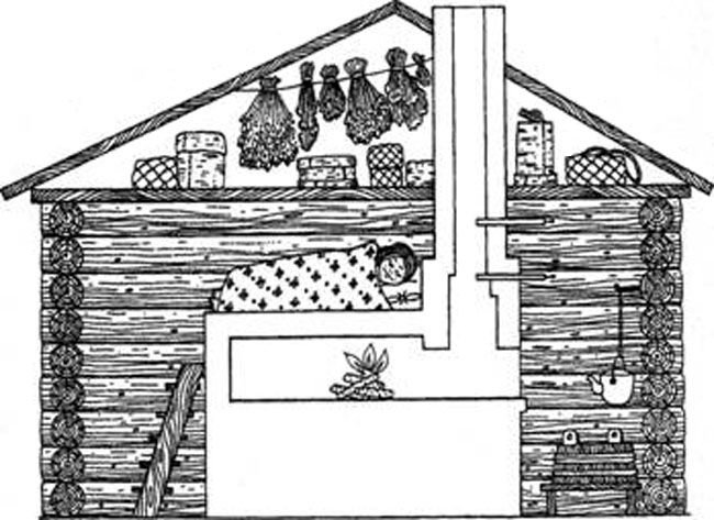 ![Печь в курной избе]()