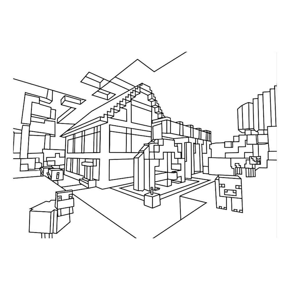 Раскраска майнкрафт постройки