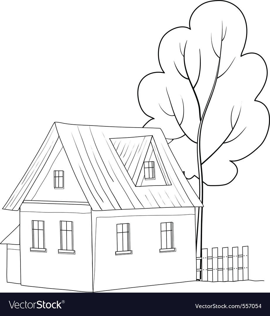 ![Домик с забором контур]()