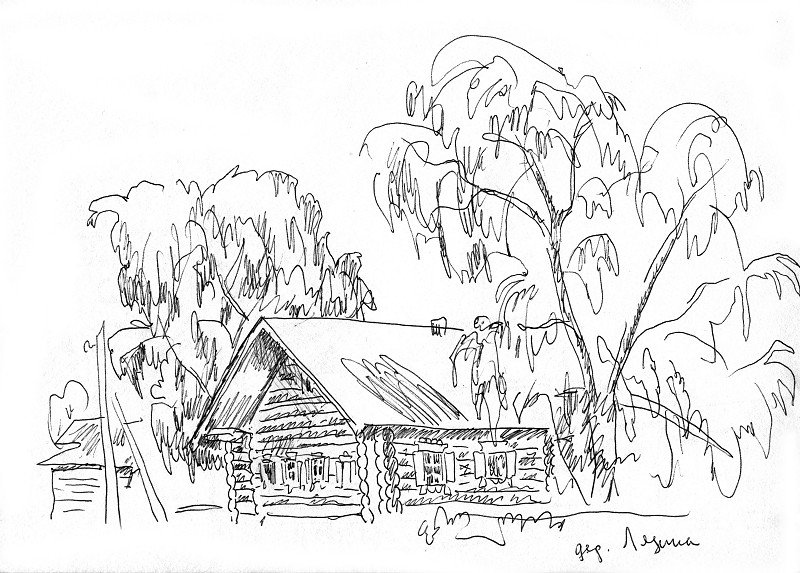 ![Деревенские домики в графике]()