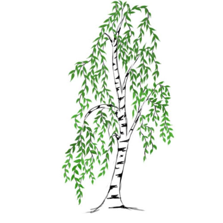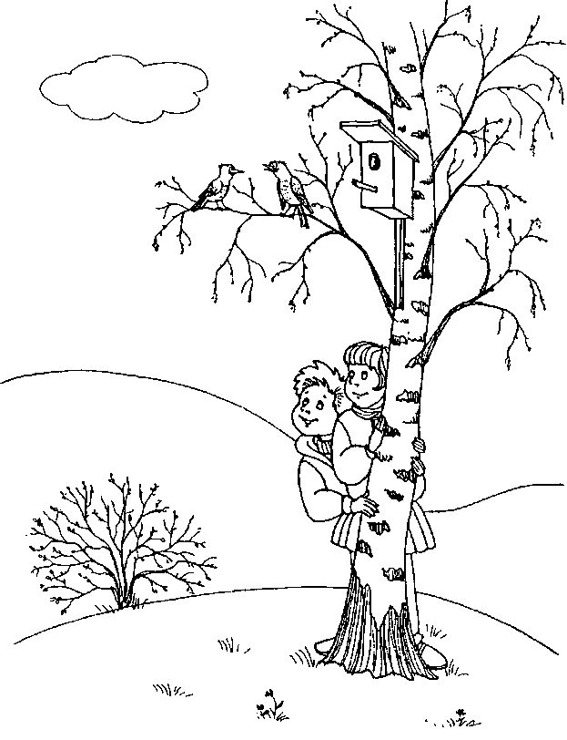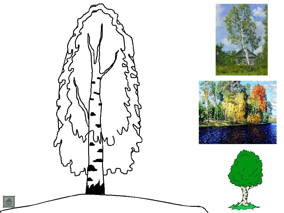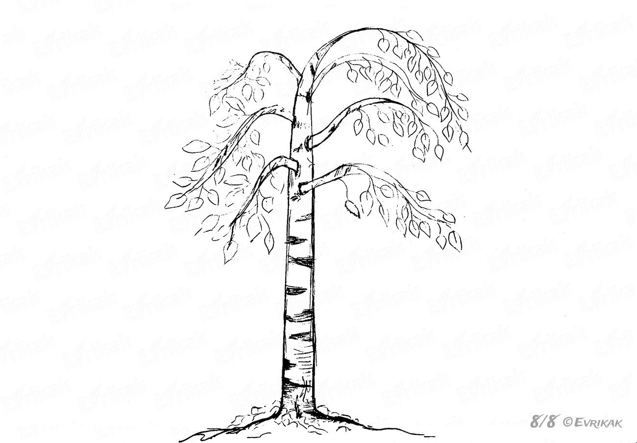 ![Береза раскраска]()