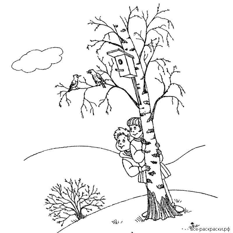 Береза раскраска для детей