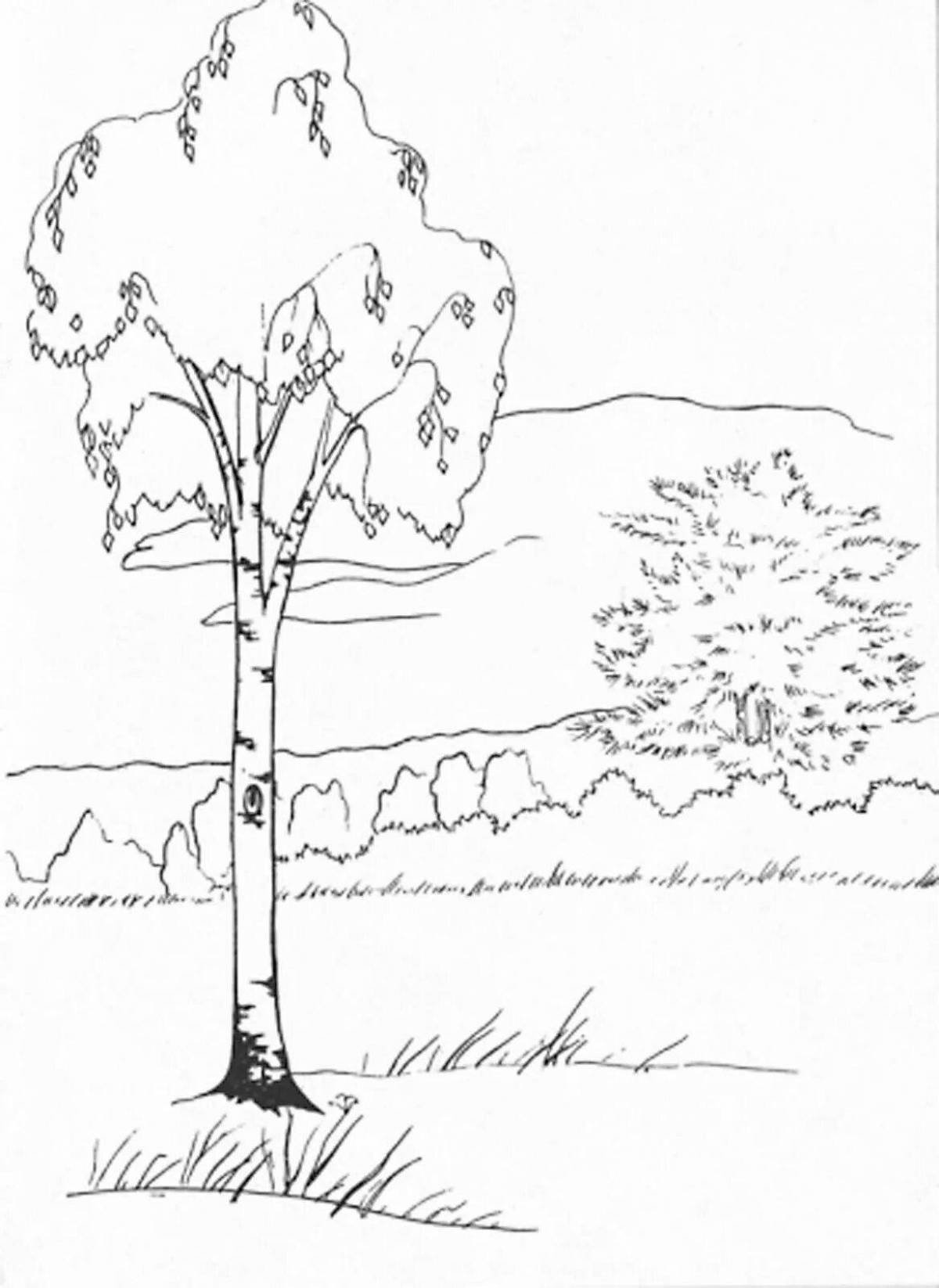 Береза раскраска