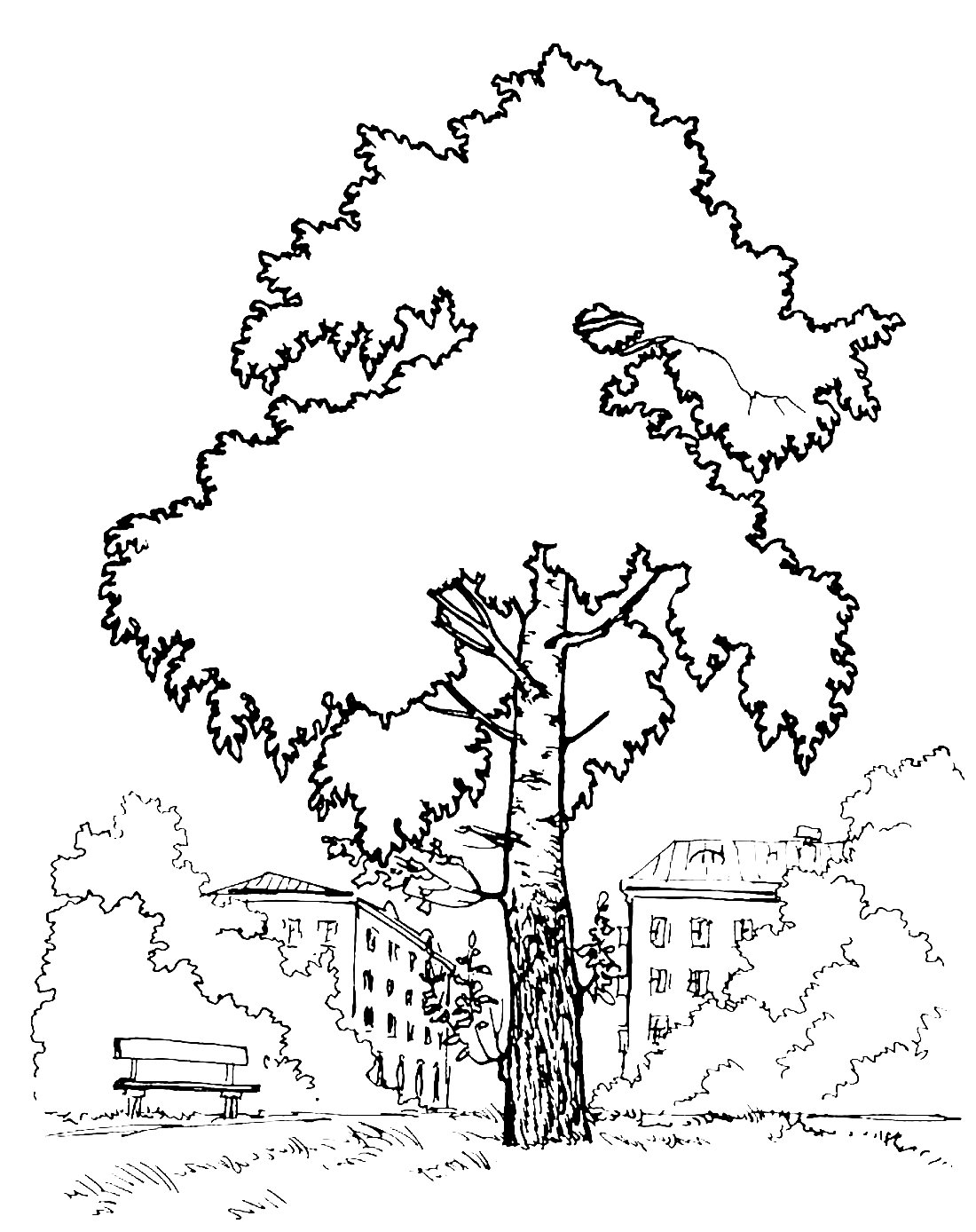 ![Берёза рисунок карандашом]()
