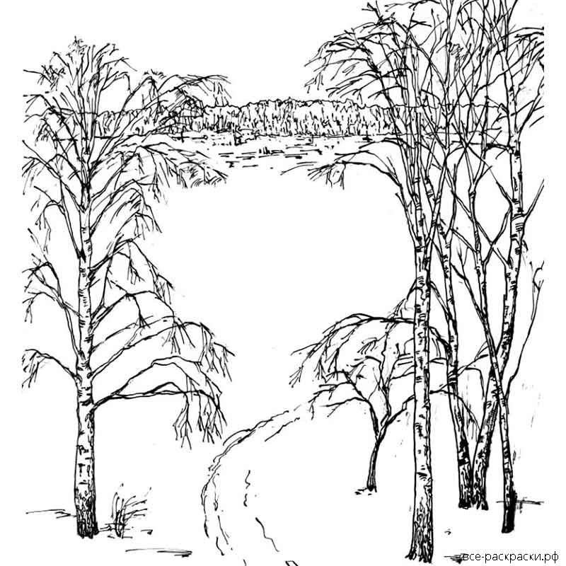 Весенний пейзаж раскраска