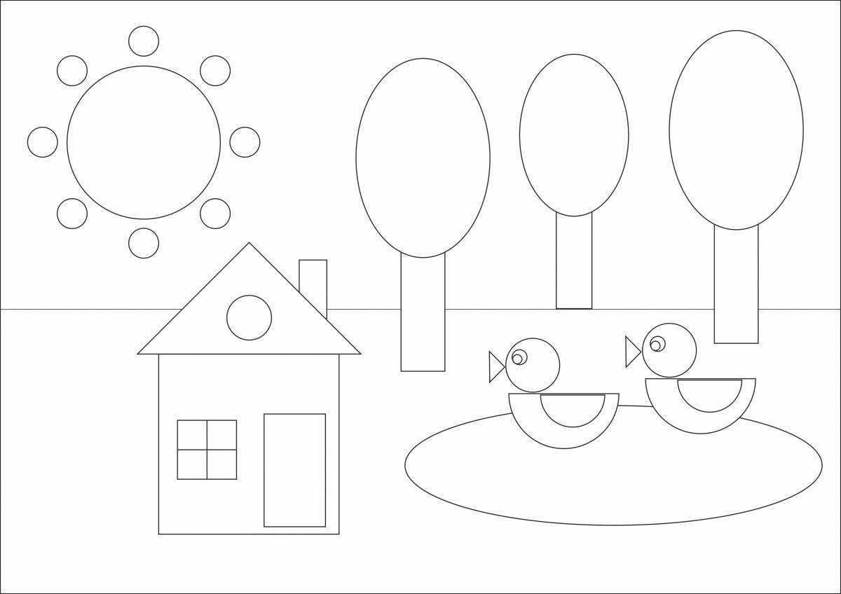 ![Раскраска домик из геометрических фигур]()