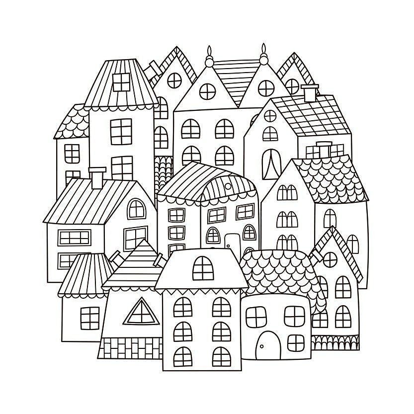 Раскраска. Домики
