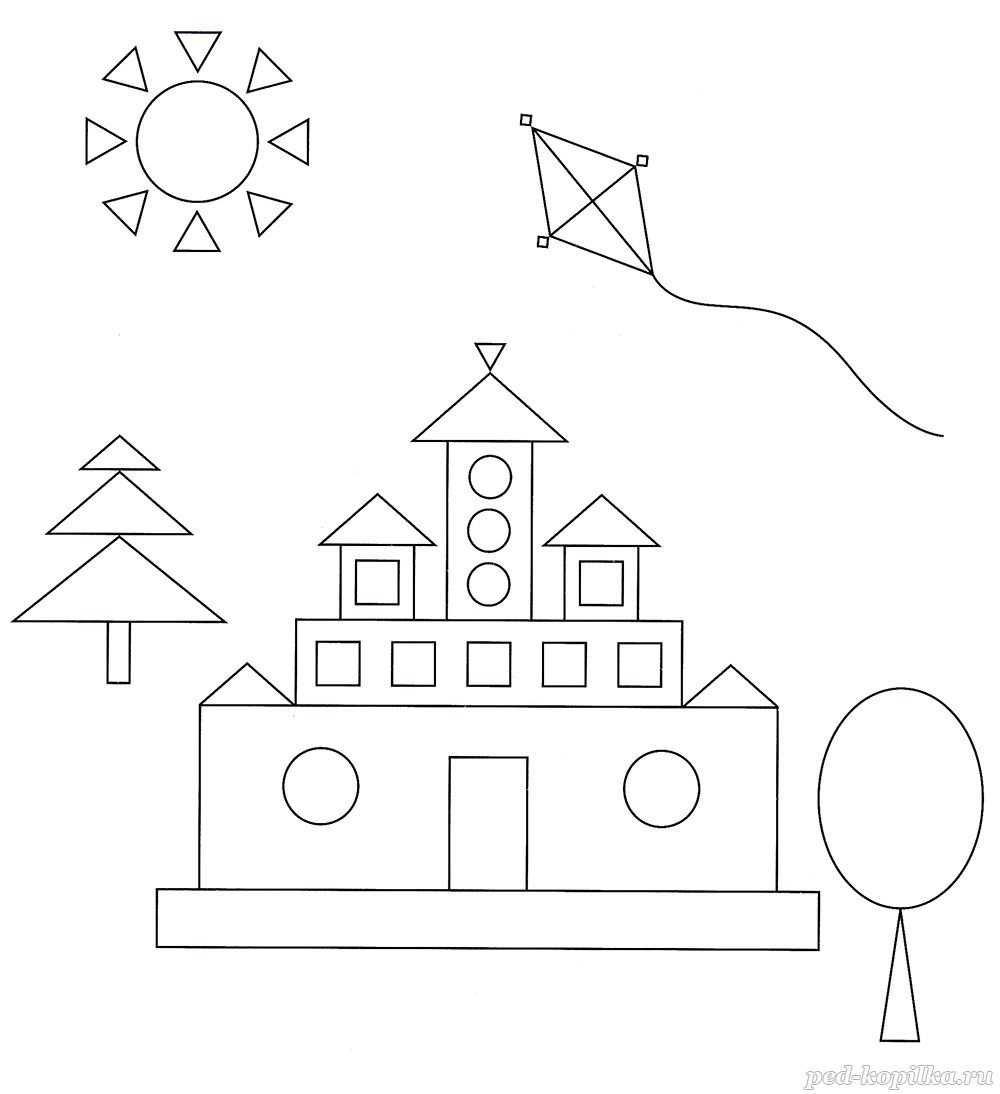 ![Замок из геометрических фигур для дошкольников]()