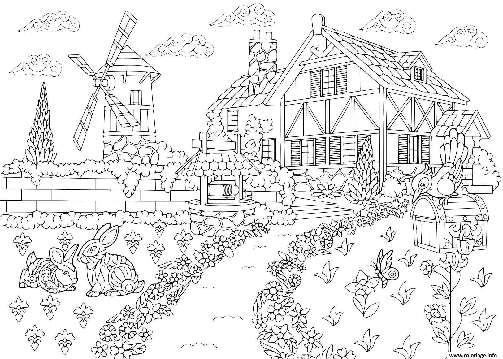 ![Раскраски для взрослых деревня]()