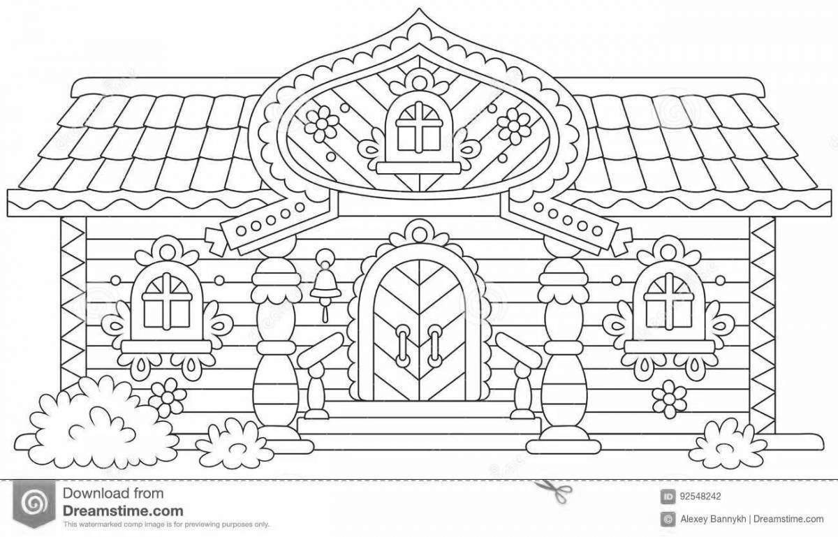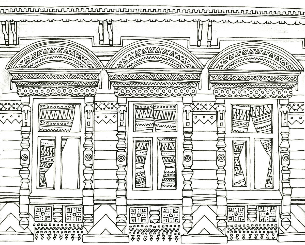 ![Раскраски деревянный дом с наличниками (42 фото)]()