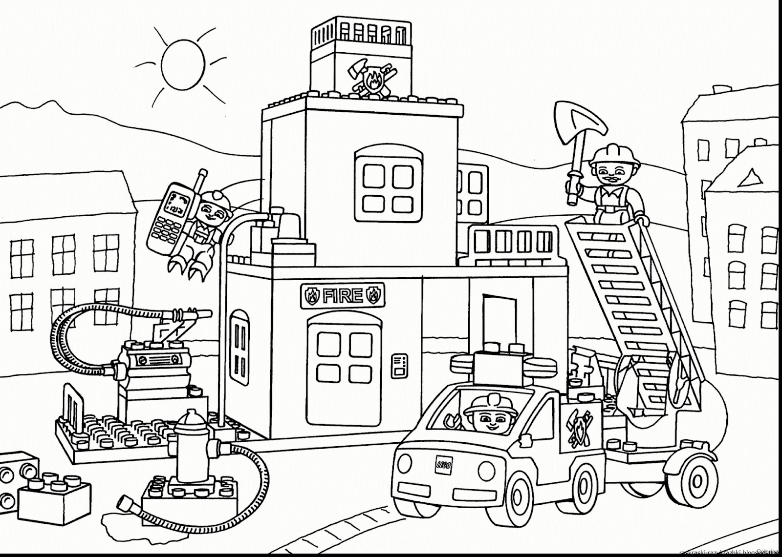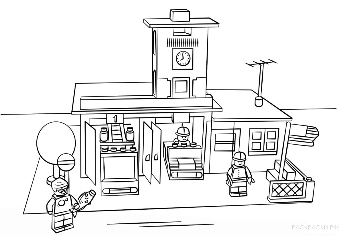 Раскраска лего пожарная станция