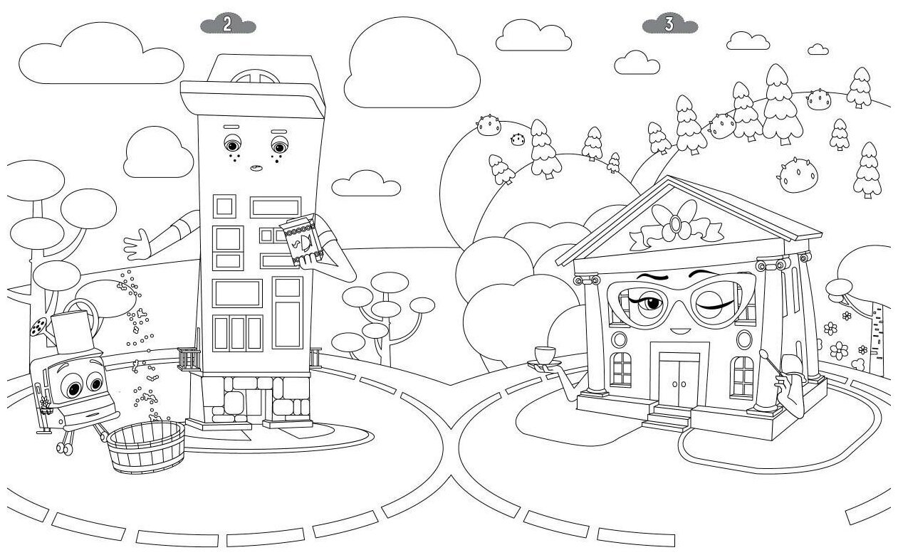 ![Раскраска домики мультик]()