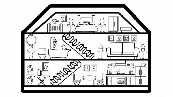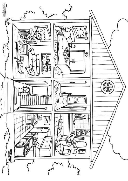 Раскраска домик с комнатами