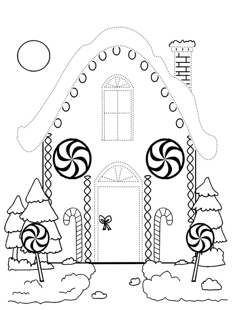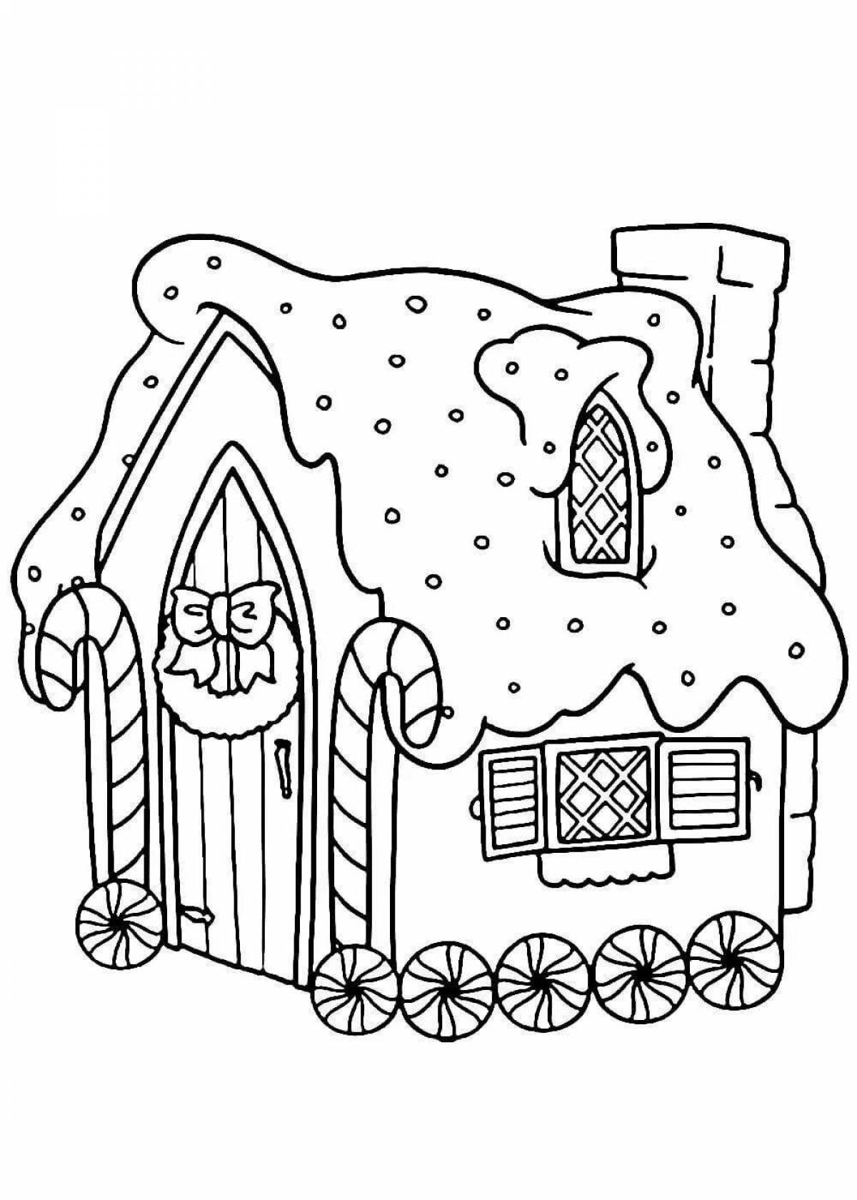 Раскраски новогодние для детей сложные Пряничный домик