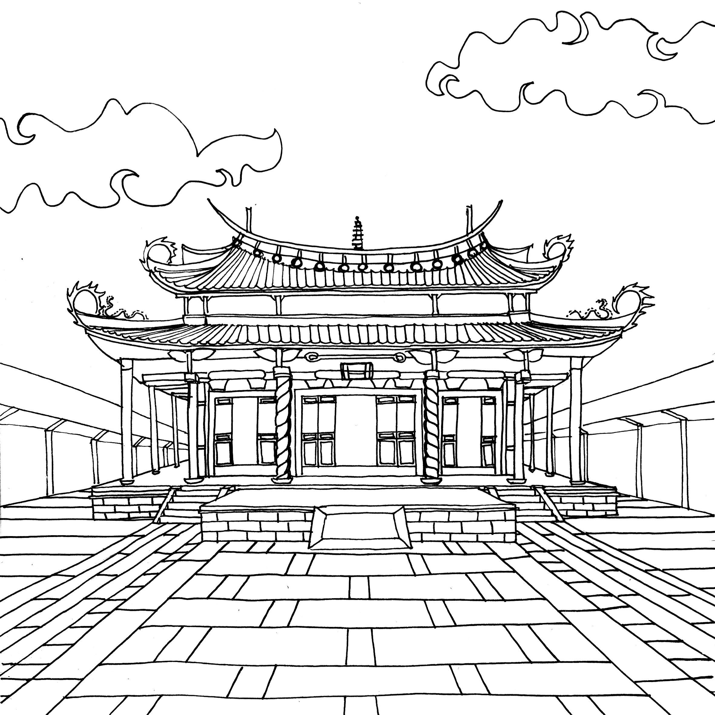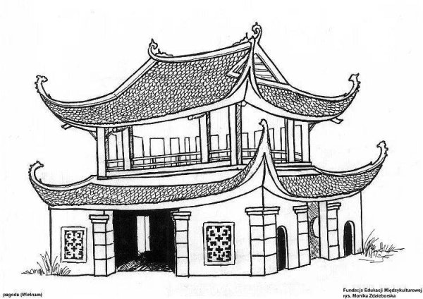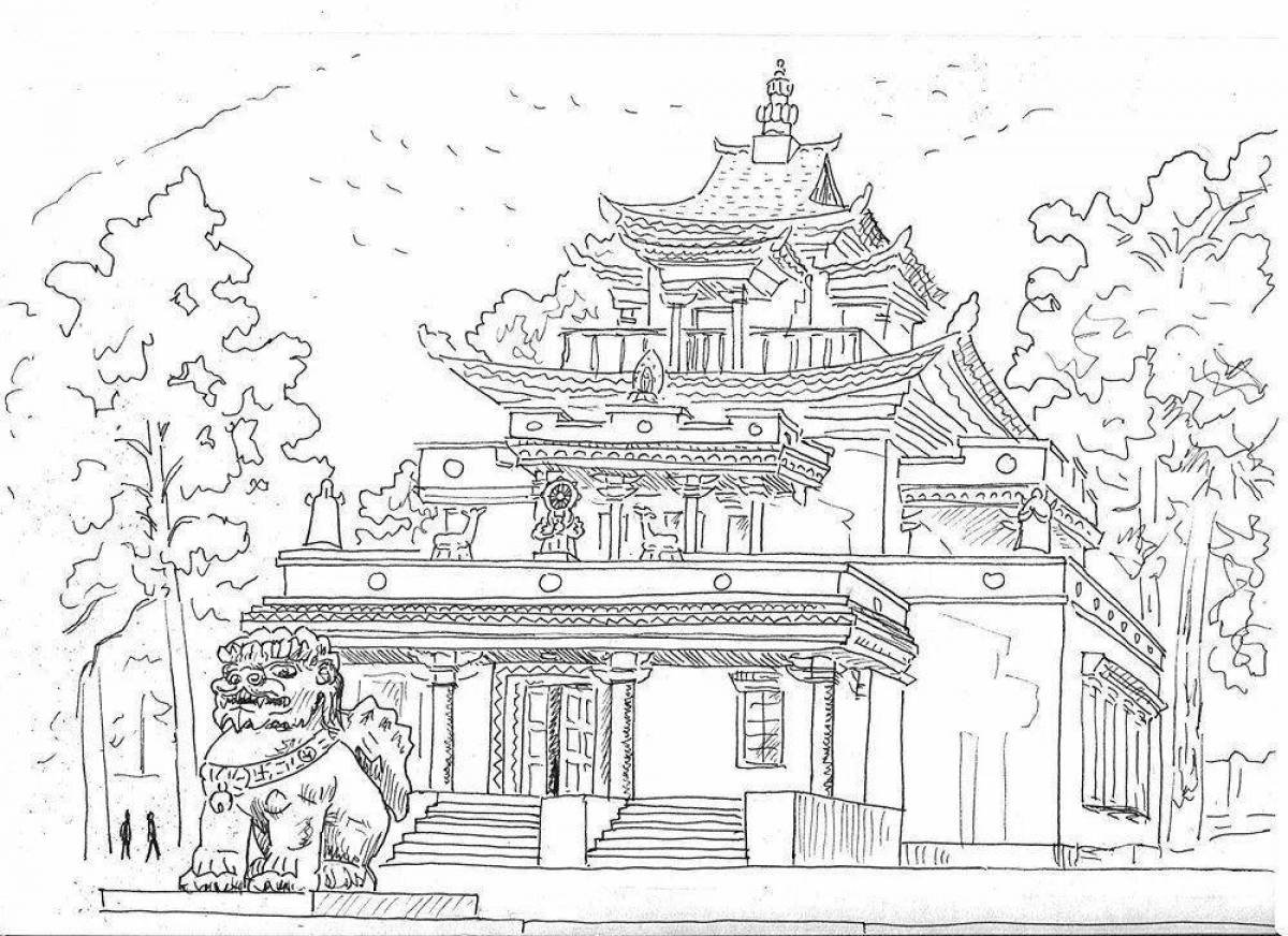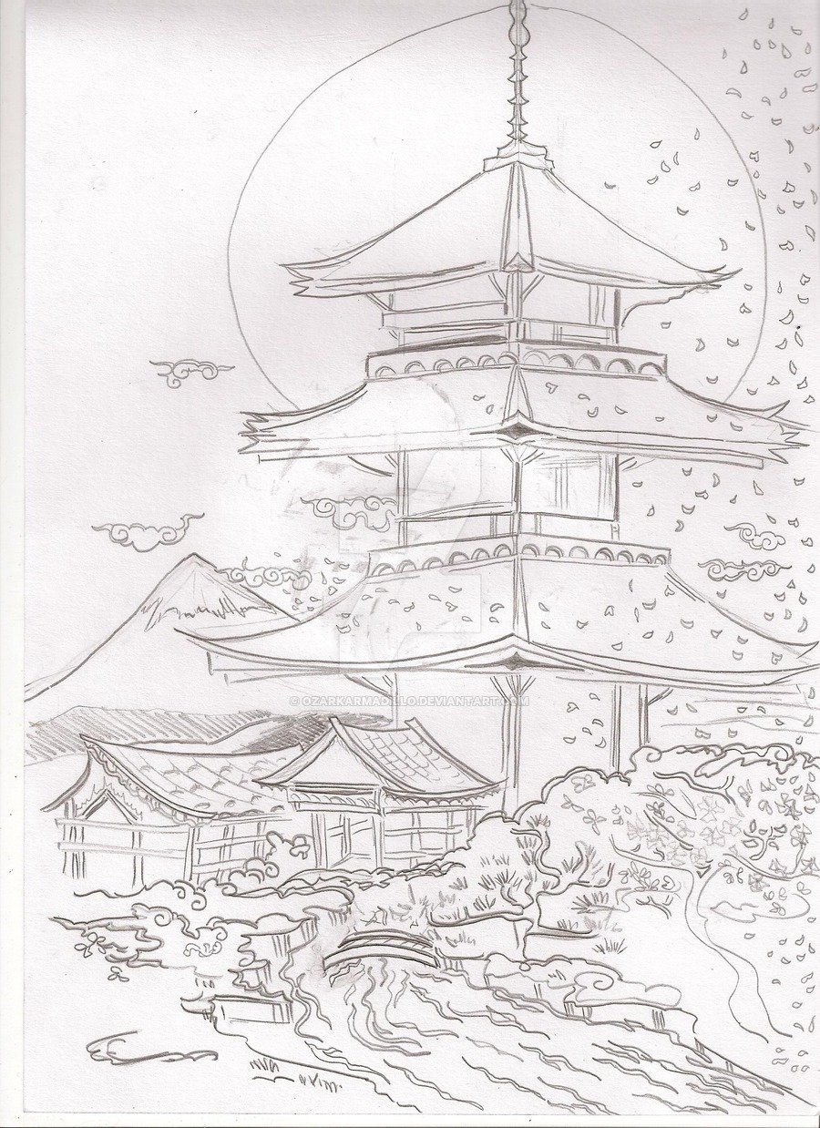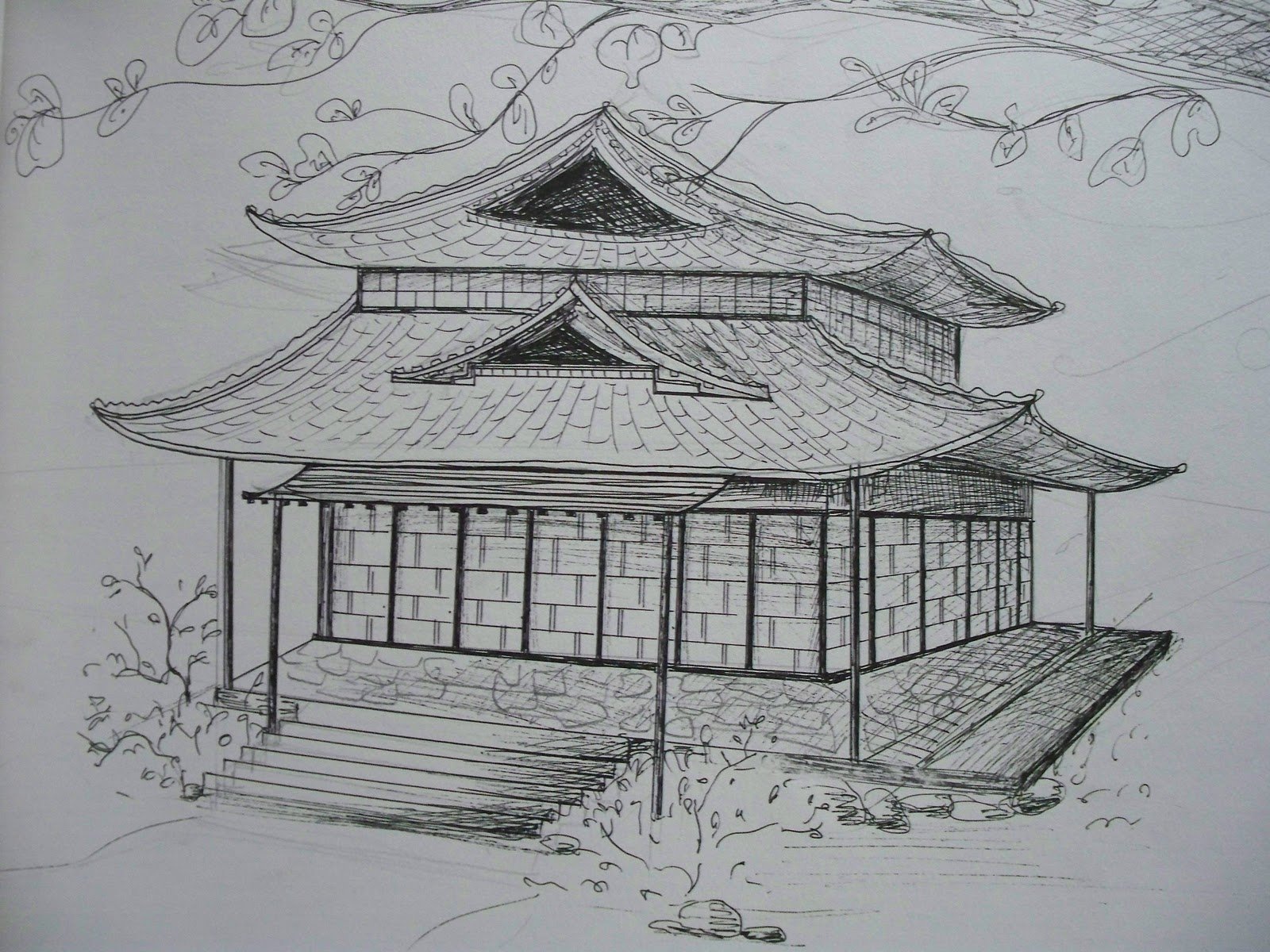 ![Храм Хигаси Хонгандзи Япония рисунок карандашом]()