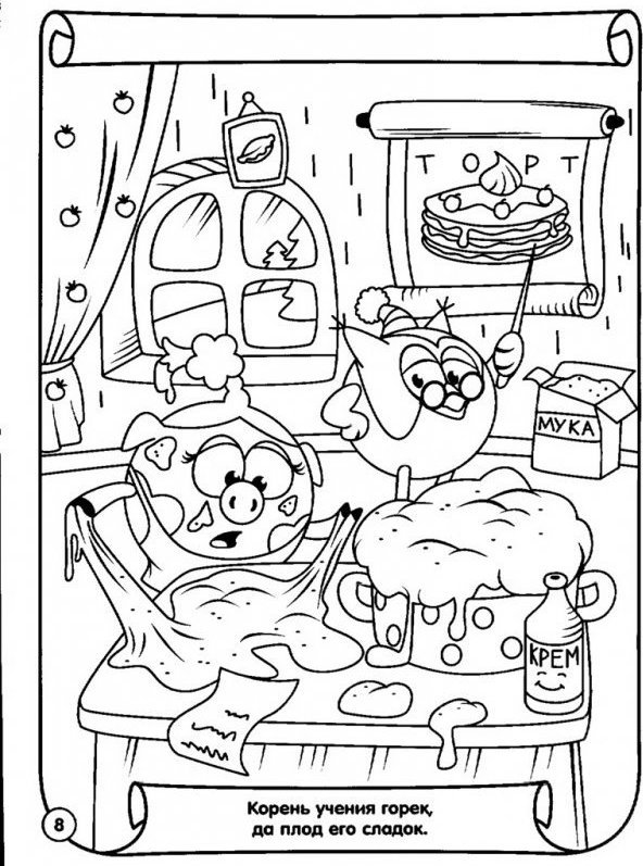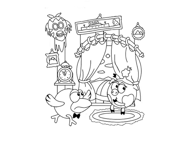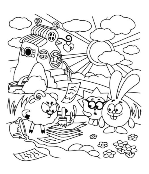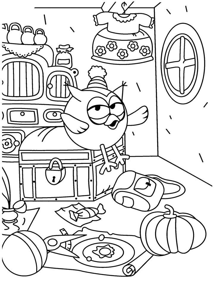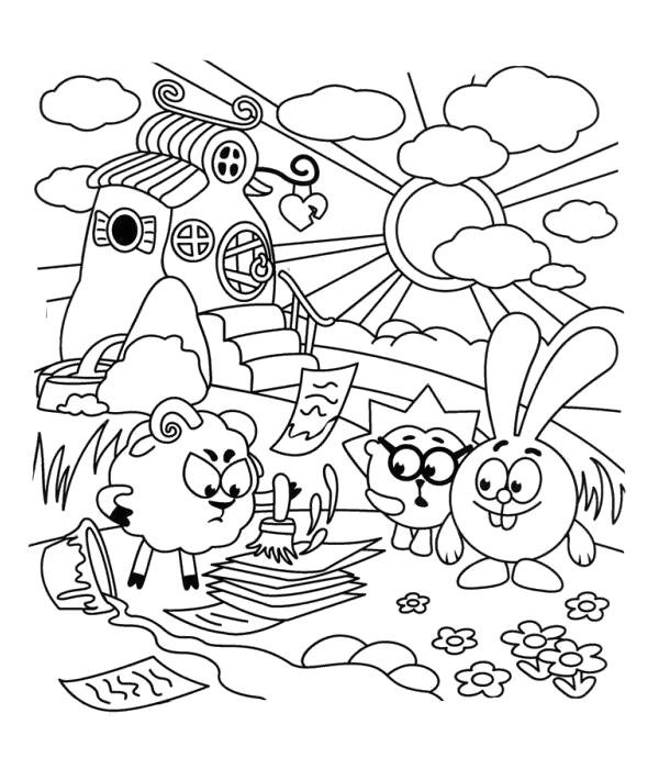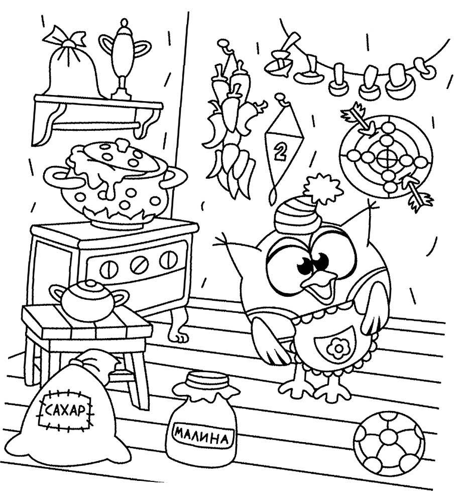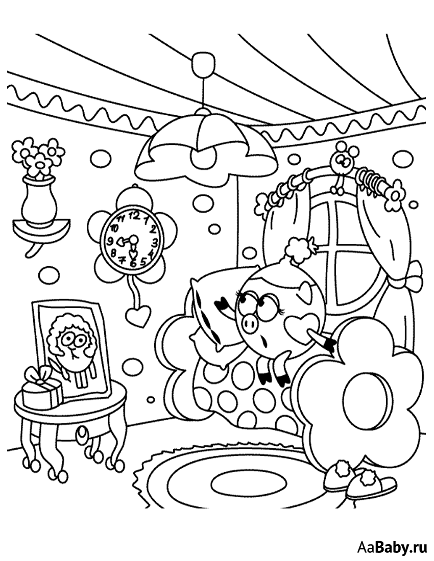 Раскраски Смешарики комнаты