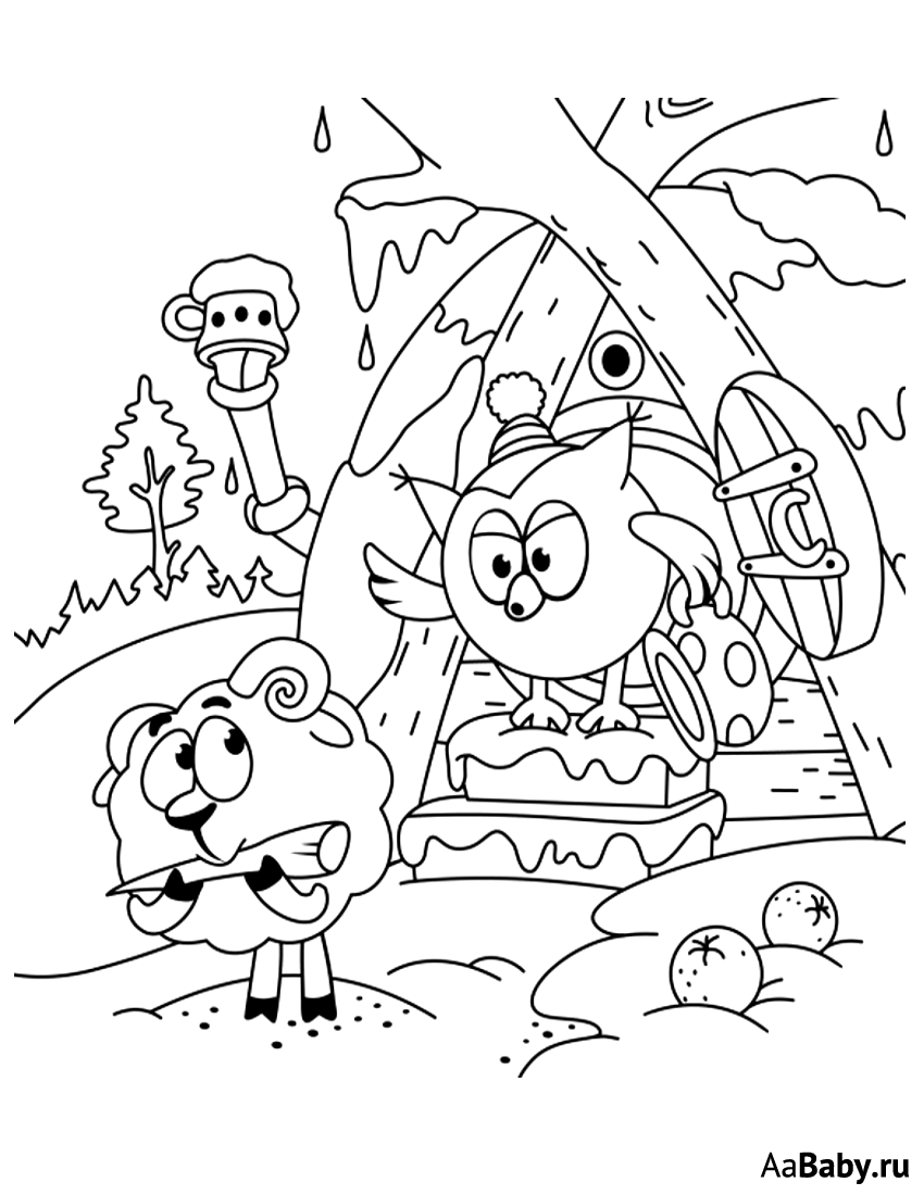 Дом Совуньи из смешариков раскраска