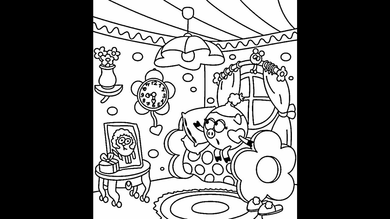 ![Домик Нюши раскраска]()