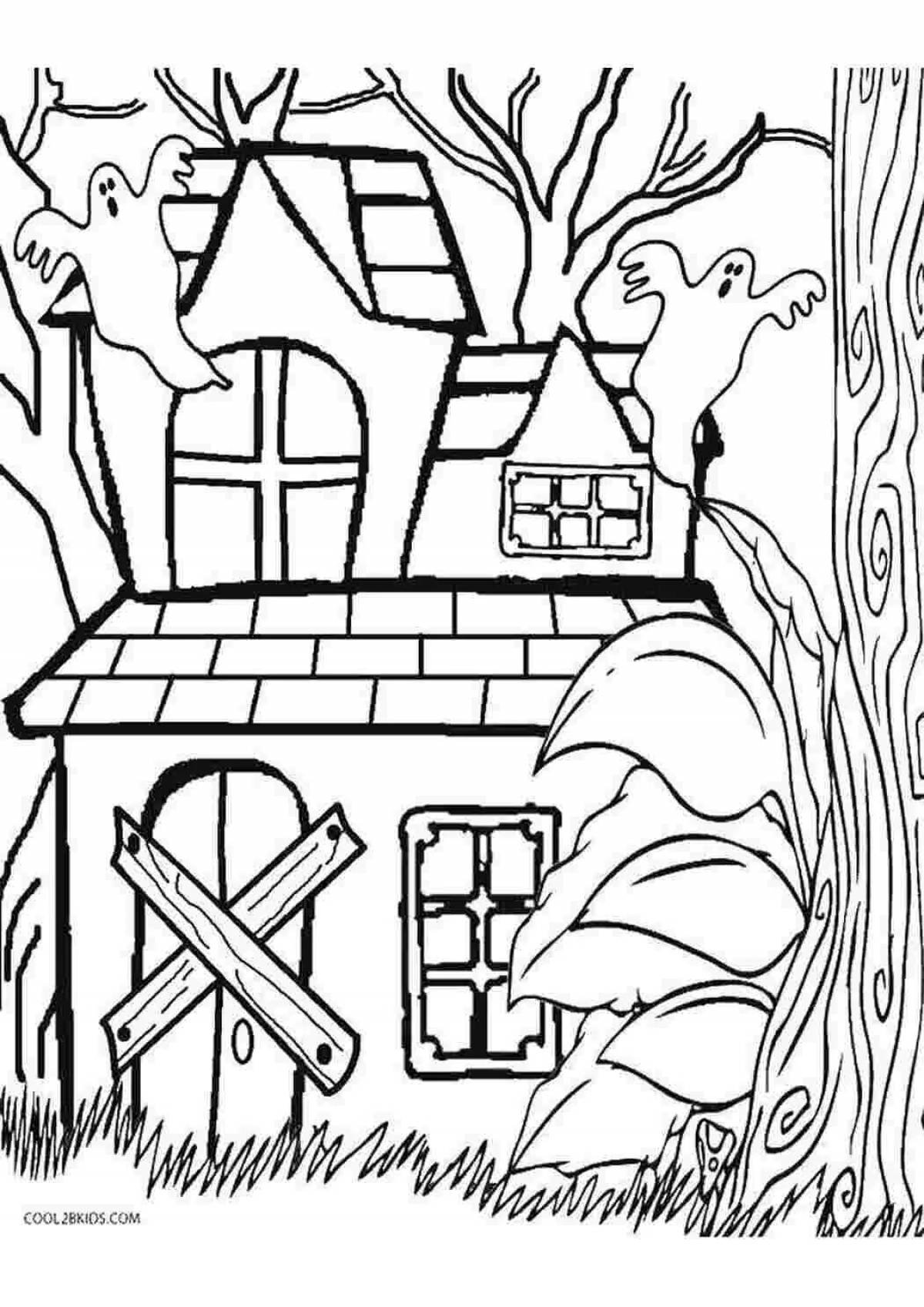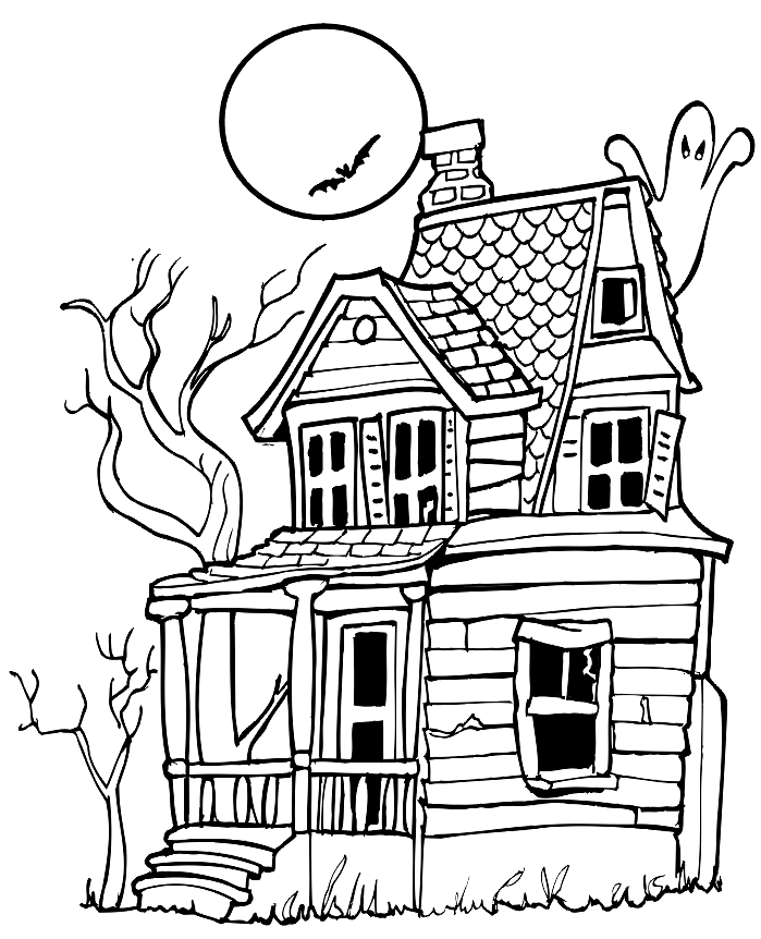 ![Раскраска дом с привидениями]()
