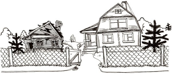 ![Разрушенный дом карандашом]()