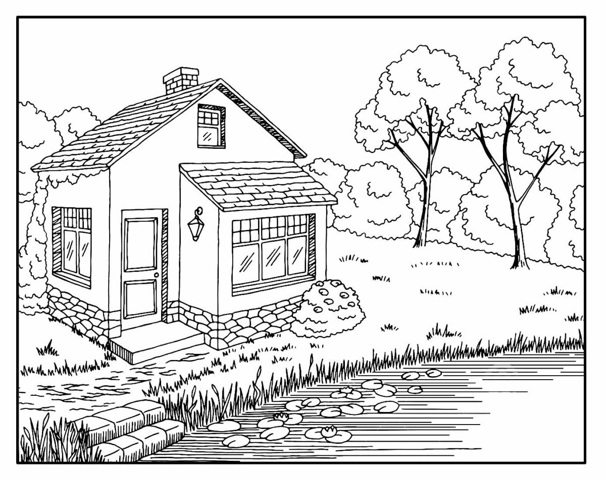 Дом у озера раскраска