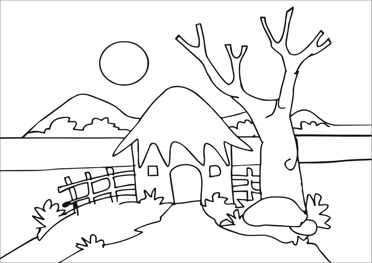 Домик и природа для раскрашивания для детей
