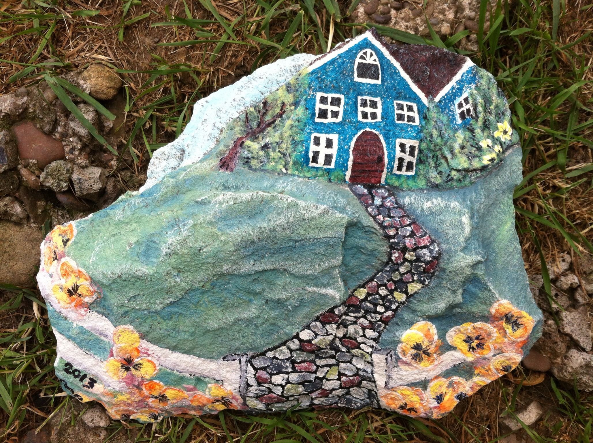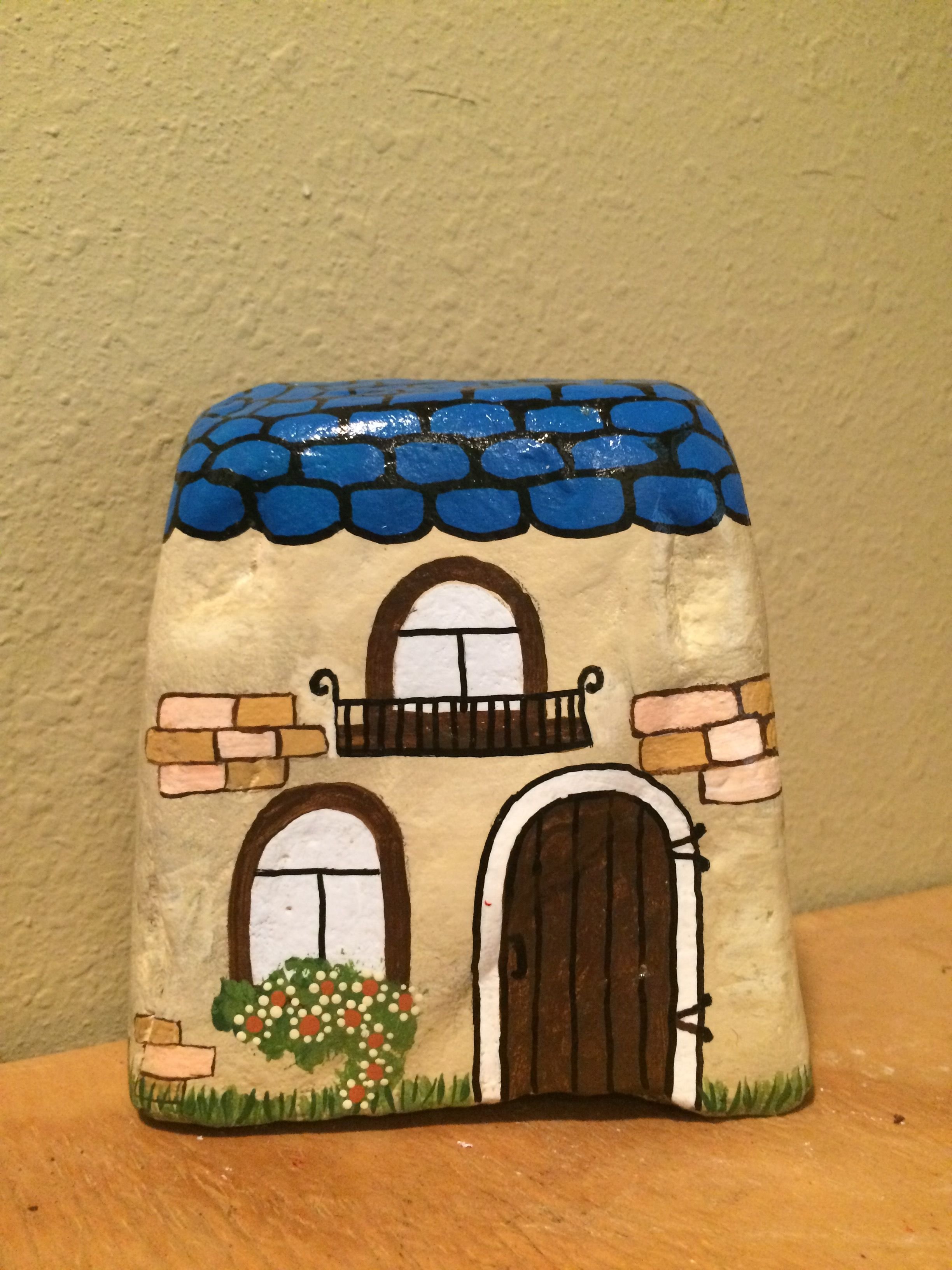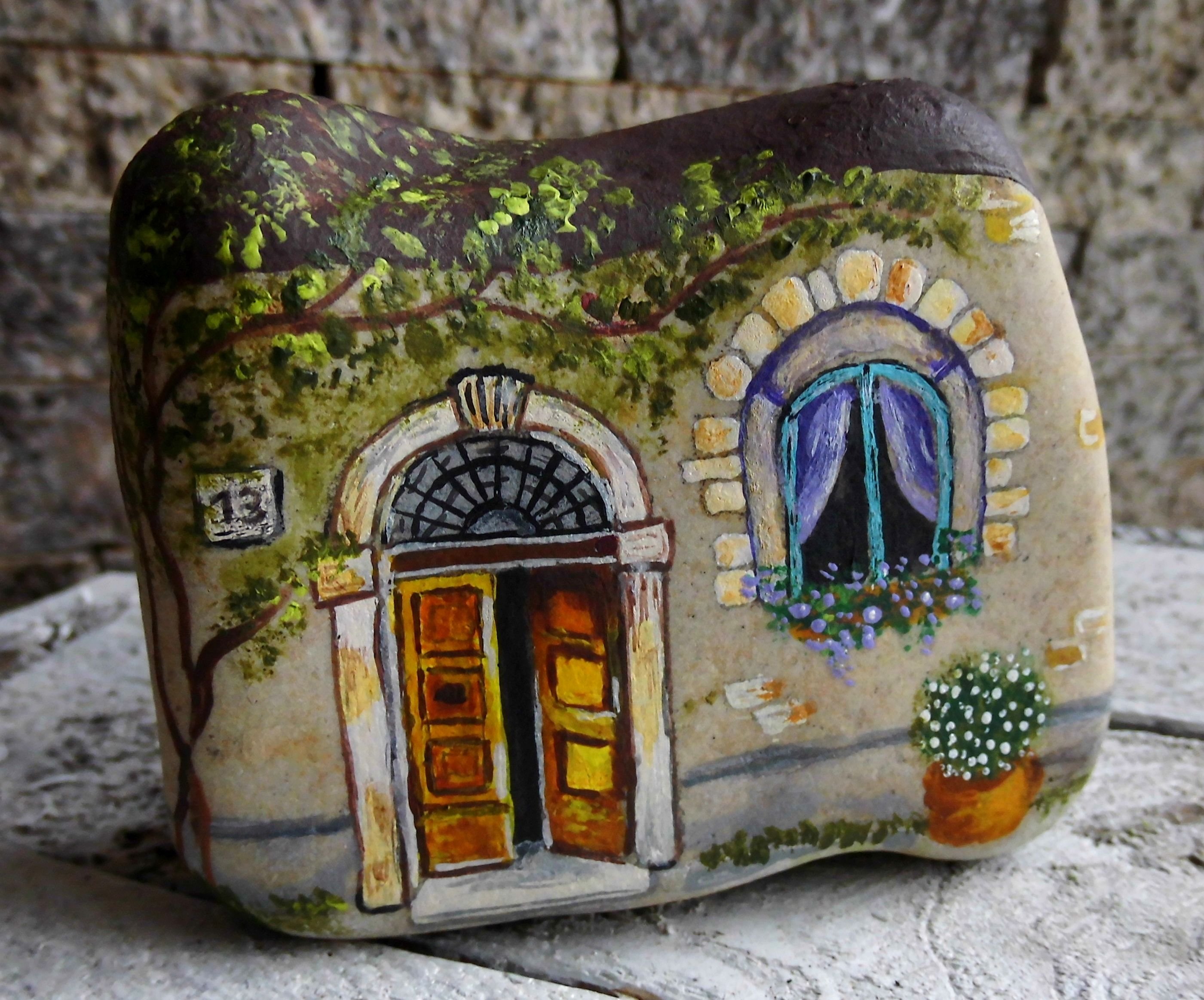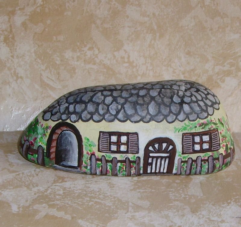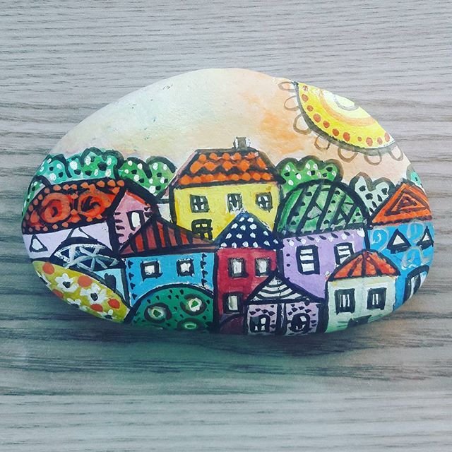![Домики на камнях акриловыми красками в старинном стиле]()