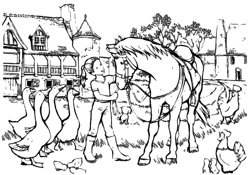 ![Раскраска Лошадиная ферма]()