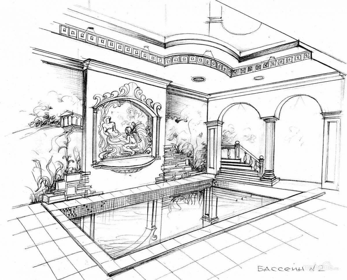 ![Дом с бассейном эскиз]()